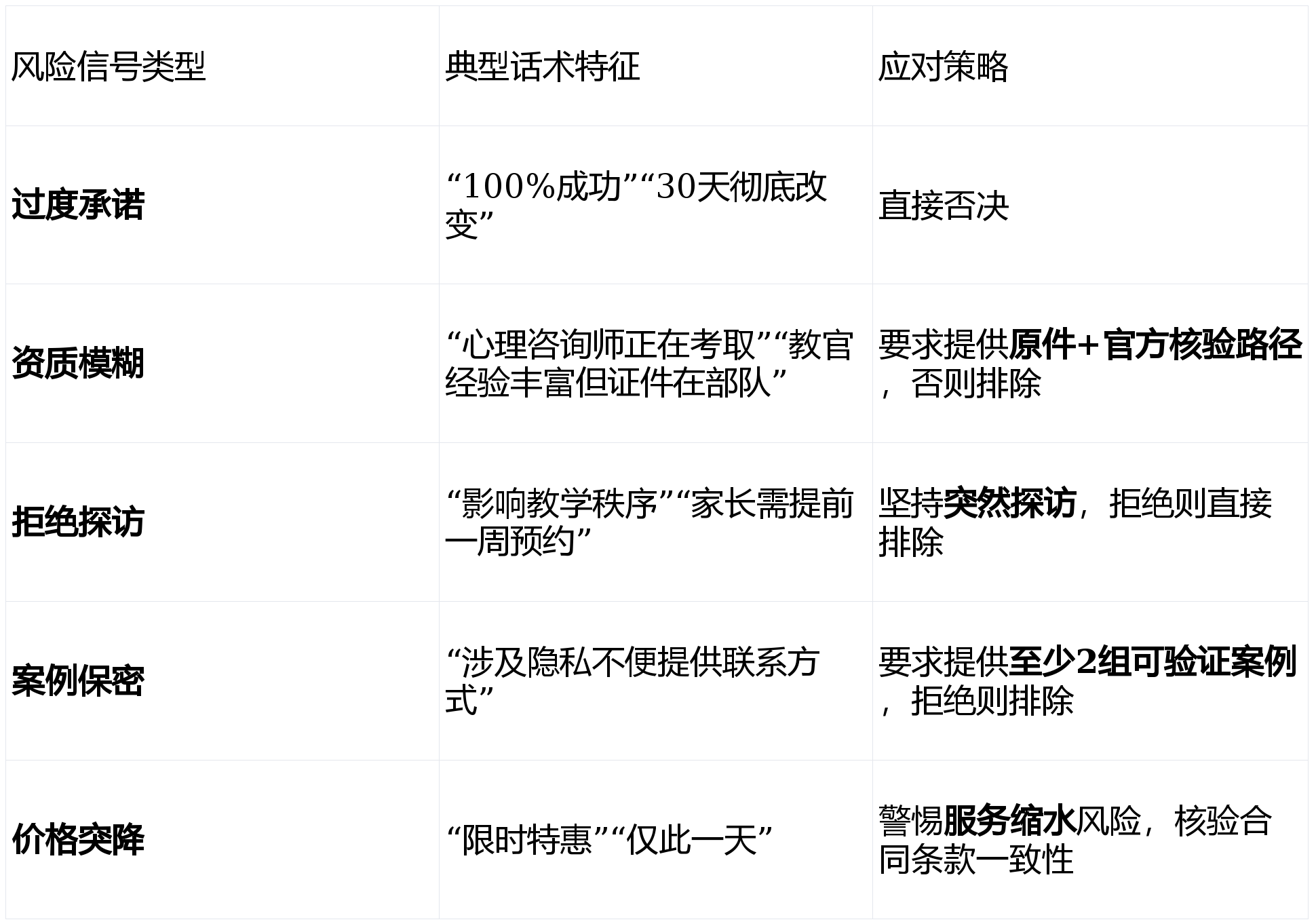 信号三:家长知情权取沟通权。达强调“全程兼顾个别取家庭需求” 。必需正在合同中明白商定:家长沟通频次(每周≥1次)、程度(能否答应家长随机调取)、月度书面演讲(含行为数据、心理评估、学业进展)。任何通明沟通、家长知情权的机构,应间接解除 。